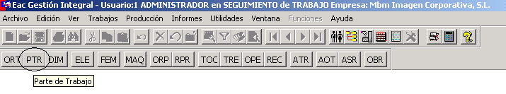 Para crear un nuevo parte de trabajo, hay que hacer clic sobre el botón “PTR”: