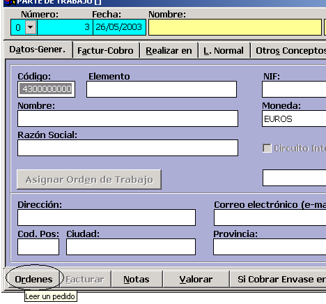 En el formulario del parte, hacemos clic sobre el botón “Ordenes” para que nos enseñe las órdenes que podemos seleccionar.