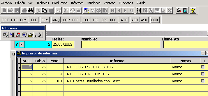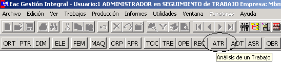 El programa dispone de informes que permiten tener información sobre y hacer el seguimiento de un trabajo. Para verlos, tenemos que hacer clic sobre el botón “ATR” (Análisis de un Trabajo) con la orden de trabajo que queramos analizar en pantalla.